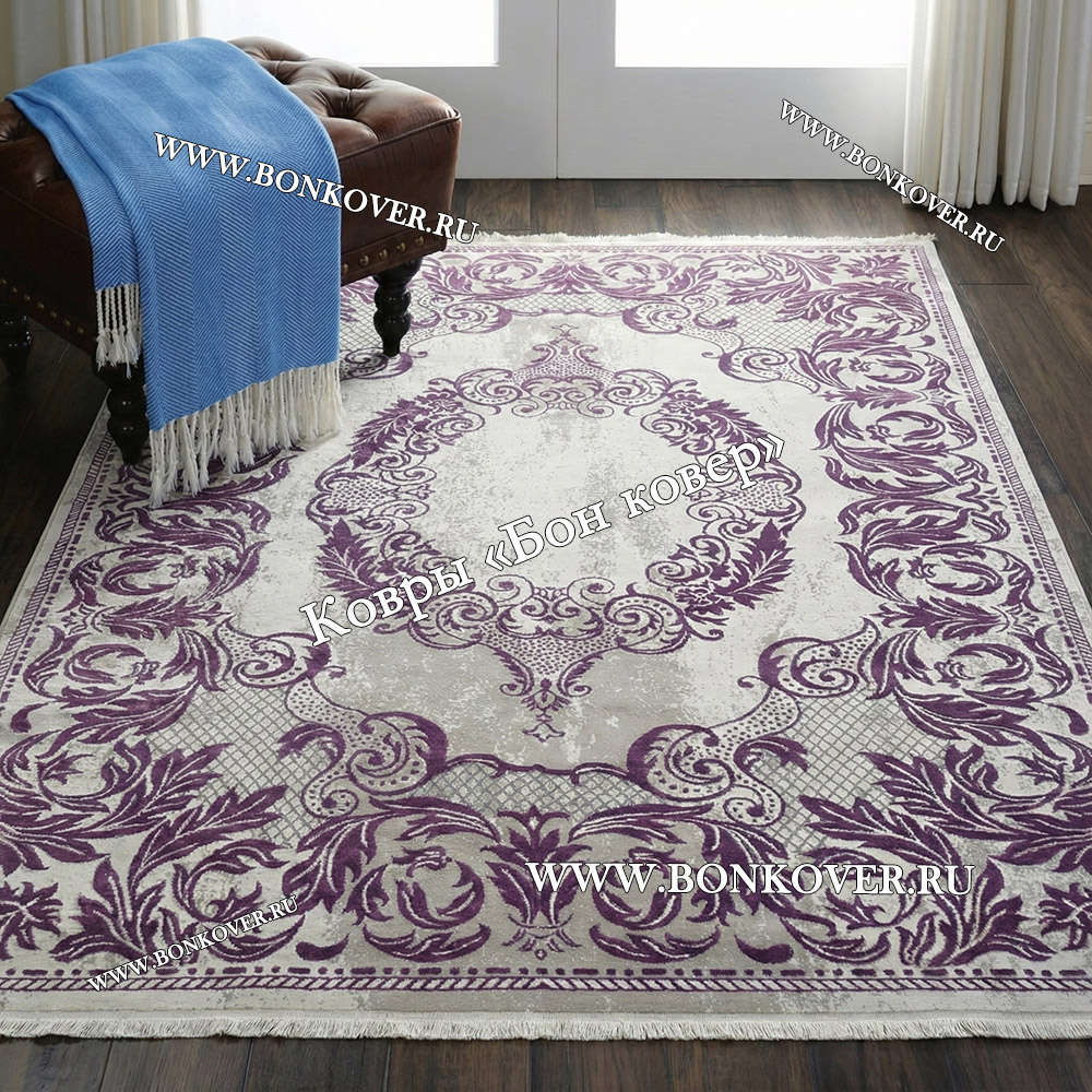 Ковер Медальон Для Гостиной Дизайн 30543 Сиреневый станет привлекательным дополнением интерьера, оформленного в современном или классическом стиле. Мягкое, но прочное, ковровое покрытие обеспечивает тепло- и шумоизоляцию, отличается длительным сроком эксплуатации, пожаробезопасностью, экологичностью и высокой износостойкостью, является отличной преградой от повышенной влажности в помещении и утеплителем для холодного пола. Благодаря качеству материалов, ковер не деформируется, сохраняет форму под тяжестью предметов мебели. За его поверхностью легко ухаживать.