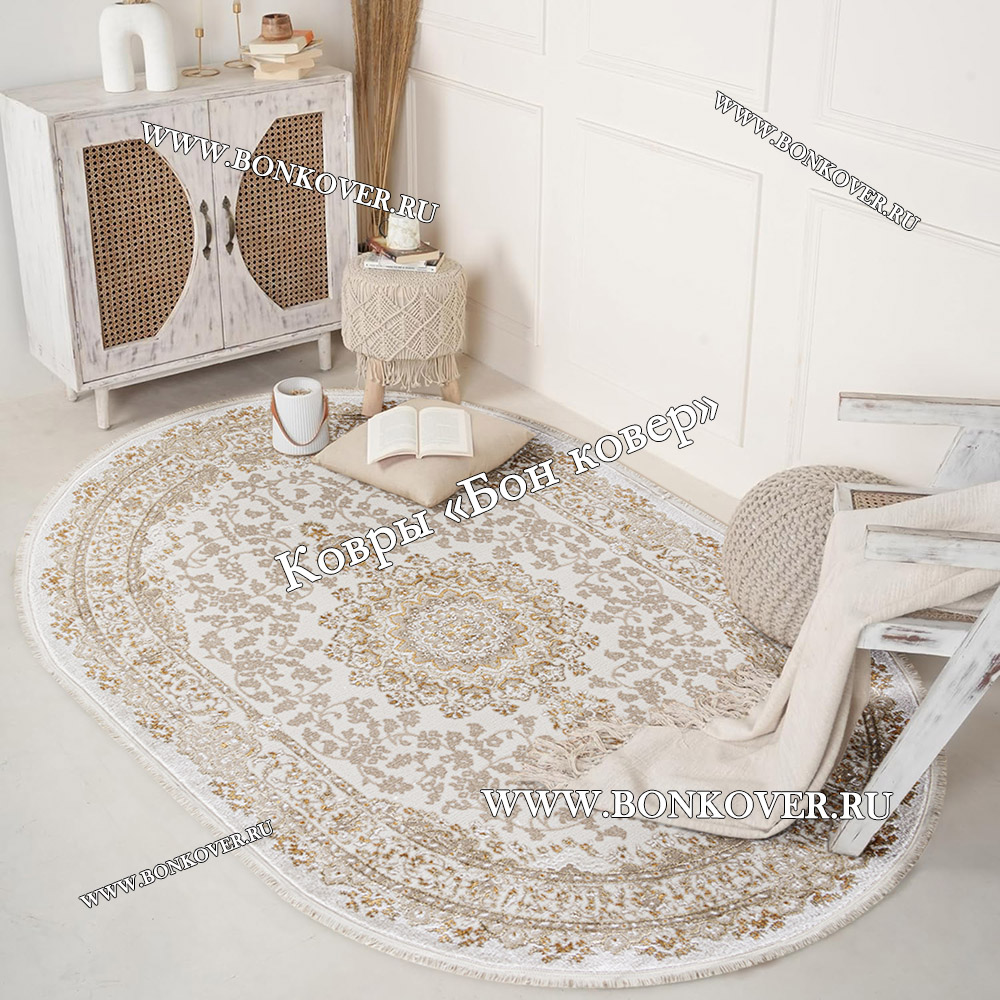 Импозантный Турецкий Ковер Для Гостиной Медальон Дизайн 05 Овал наполняет интерьер комнаты теплом и уютом, гармонично сочетает в себе изящество и красоту. Он выполнен из высококачественных материалов, комфортный и долговечный.